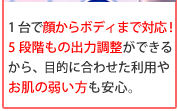 は家庭用でありながら、エステ並の安定出力、そして連続使用を可能にした、高性能美容器具なのです。だから売れているんです!!