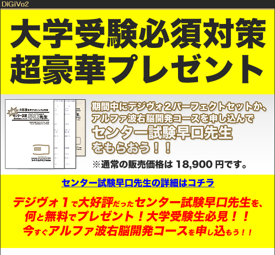今デジヴォ2-Mパーフェクトセットをお申込頂くと早口先生をプレゼント!詳細はコチラ!