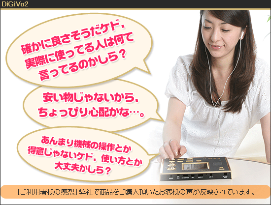 昔からヒトの話を覚えるのがニガテで、すぐ忘れちゃうんです。結構悩んでまして、仕事にも若干支障が出てきてしまったので、デジヴォを買いました。まだ使いはじめたばかりで、効果の程は分かりませんが、ただ早い音を聞いているだけで凄く楽しいですね。非日常的な感覚になれて、かなり新鮮です。お店の対応も非常に丁寧でしたよ♪