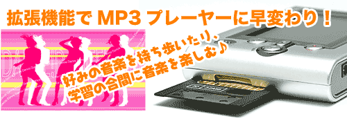 スマートメディア内蔵のため、スマートメディアを入れ替えるだけで、新しいコンテンツが楽しめちゃう!音楽もスマートメディアに入れられるので、学習の合間に大好きな音楽で気分転換!