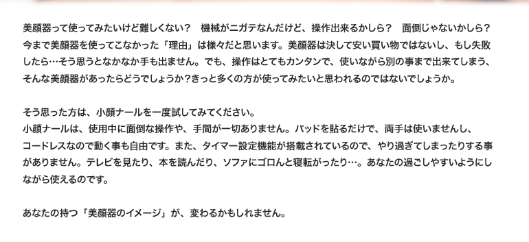 | 小顔ナール(スペシャルバージョン) | 小顔ナール(通常バージョン) | |