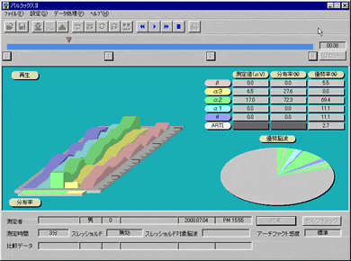 検出した脳波を解析し、分かりやすいグラフとコメントをコンピュータの画面上に表示します。これにより自分の心理状態を正確に把握し分析する事が出来ます。