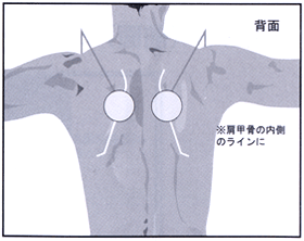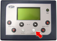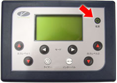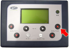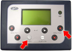 筋力トレーニングのブイトロンの音量を調節したい場合は、タイマーボタン(矢印左)を押しながら、出力レベルボタン(矢印右)を押して設定します。